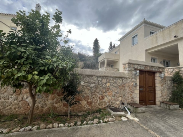 Στον α΄οροφο, που είναι και το τελευταίο επίπεδο, το οποίο έχει δεύτερη είσοδο με εξωτερική σκάλα, βρίσκεται ένας φωτεινός χώρος υποδοχής με τζάκι, open plan μεγάλη κουζίνα πλήρως εξοπλισμένη με όλες τις ηλεκτρικές συσκευές, wc επισκεπτών και πρόσβαση σε σκεπαστή βεράντα με ανεμπόδιστη θέα.