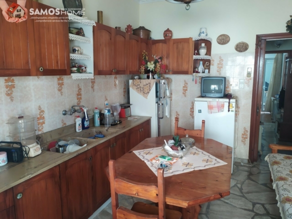 In Marathokampos, Samos, steht ein privilegiertes Einfamilienhaus im Erdgeschoss mit Keller und Garten zum Verkauf. Das Haus liegt in der Nähe der öffentlichen Straße und bietet einen Panoramablick auf das Meer. Es befindet sich auf einem 361,07 m2 großen Grundstück, das mit Bäumen und Oliven bepflanzt ist. Das Erdgeschoss des Hauses 85,19 m2 besteht aus Wohnzimmer – Esszimmer, Küche, zwei Schlafzimmern und Badezimmer. Jedes Schlafzimmer verfügt über einen Balkon mit Aussicht. Das Haus verfügt über doppelt verglaste Aluminiumfenster mit Fliegengittern, Zentralheizung, Heizkörper und Klimaanlage. Im Keller 29,26 m2 mit Zugang vom Garten befindet sich ein Lager. Es gibt Zugang zur Terrasse mit einer Außentreppe und uneingeschränktem Meerblick.