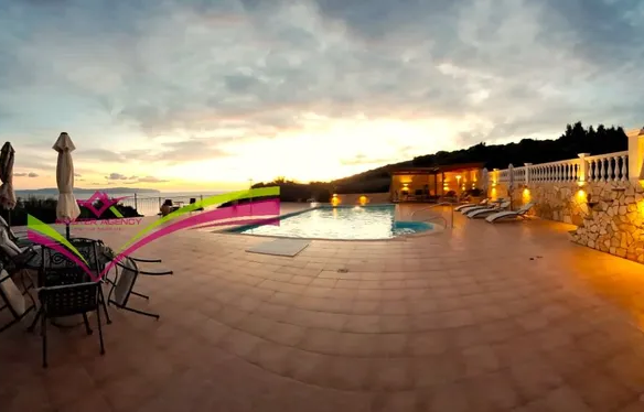 Code: 6048 – Kefalonia – Rajakli-Bereich, zum Verkauf steht eine einzigartig schöne Villa von 165 m² mit einem 60,5 m² großen Swimmingpool, gelegen auf einem Grundstück von 4.044 m² über dem Strand von Kaminia. Es wurde 2005 erbaut und ist, wie auf den Fotos und im Video zu sehen ist, ein Anwesen von besonderer Schönheit und einer Kombination aus moderner und klassischer Ästhetik. Vor dem Haupteingang gibt es einen überdachten Parkplatz, der problemlos Platz für 2-3 Fahrzeuge bietet. Sobald Sie das Tor betreten, finden Sie einen wunderschön angelegten Garten mit verschiedenen Bäumen sowie eine geräumige, 20 m² große Garage mit Zwischengeschoss, die auch Platz für zwei Fahrzeuge bietet. Die Immobilie ist auf verschiedenen Ebenen konfiguriert.