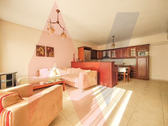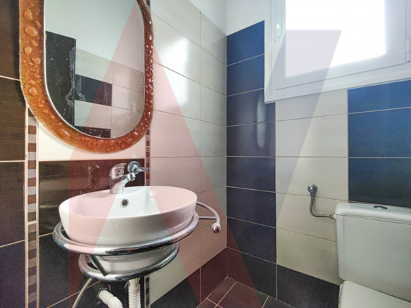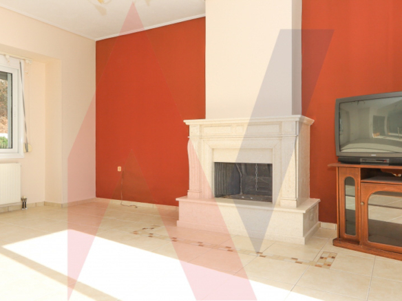 At the level of the entrance, which is also the highest of the house, with an area of 90 sq.m., there is a single large space for a dining room, a living room with a fireplace, a W.C. and a warehouse of 7 sq.m.
