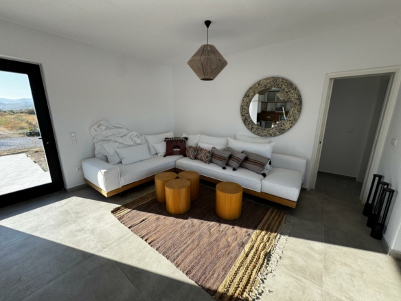 Dieses traumhafte Anwesen liegt im Westen von Naxos, nur wenige Minuten vom Stadtzentrum entfernt. Die Villa mit zwei Schlafzimmern bietet einen wunderschönen Ausblick und ist vom Flughafen und Hafen in nur fünf Minuten bequem zu erreichen. Die Lage zeichnet sich durch ihre naturnahe Umgebung aus, während die Villa gleichzeitig die Nähe zum Stadtzentrum, Ruhe und einen guten Zugang zum Meer bietet. Sie ist ideal für Familien, die eine komplett möblierte Unterkunft mit Pool in der Nähe von Chora der Hauptstadt der Insel suchen.
