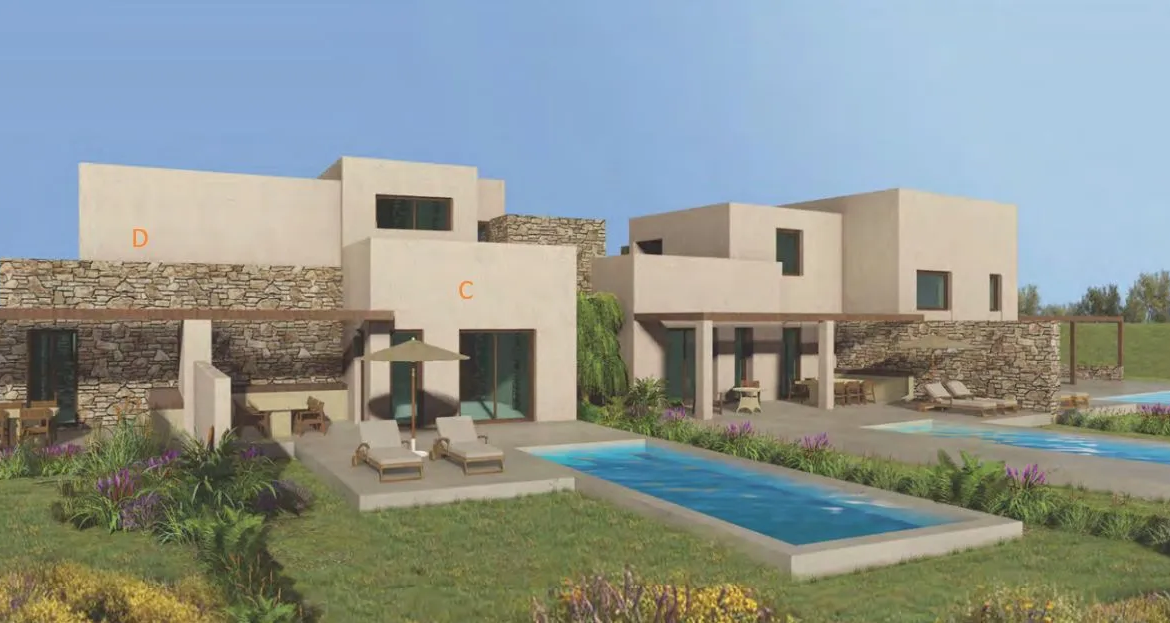 Villa D: 85m² (2 υπνοδωμάτια) + 1600m² κήπος + πισίνα + 2 θέσεις στάθμευσης: