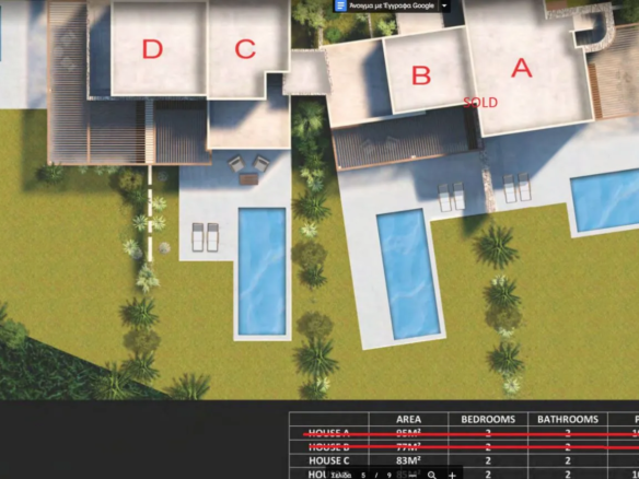 Villa C: 83m² (2 υπνοδωμάτια) + 250m² κήπος + πισίνα + 2 θέσεις στάθμευσης: