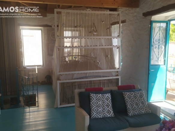 Ένα διώροφο πέτρινο σπίτι με πανοραμική θέα στη θάλασσα πωλείται στο χωριό Κουσμαδέο. Το διαμέρισμα συνολικού εμβαδού 102,50 m2 βρίσκεται σε οικόπεδο 104,19 m2. Το σπίτι έχει ανακαινιστεί με σεβασμό στην αρχιτεκτονική του σπιτιού. Στο ισόγειο υπάρχει κουζίνα και καθιστικό. Μια εσωτερική σκάλα οδηγεί σε ένα δωμάτιο όπου έχει προσαρμοστεί η γωνία του υπνοδωματίου, ένα μικρό σαλόνι με σόμπα και το μπάνιο. Υπάρχει μπαλκόνι με θέα στα βουνά, τη θάλασσα και την αυλή του απέναντι σπιτιού. Στην αυλή υπάρχει ένα σαλόνι στον κήπο, μια τραπεζαρία με λουλούδια και θέα. Πωλείται επιπλωμένο.