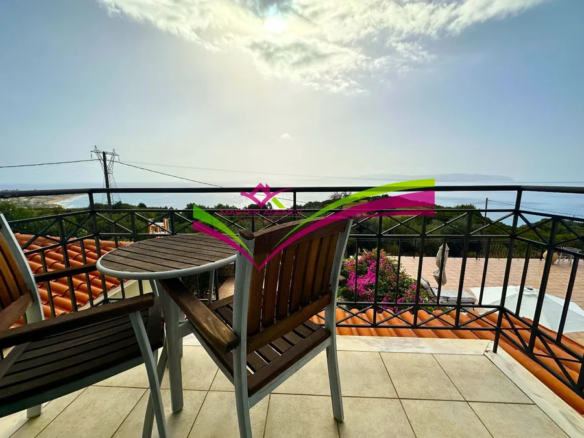 Im zweiten Stock gibt es zwei Schlafzimmer, jedes mit eigenem Bad. Jedes verfügt über einen eigenen Balkon, von dem aus man die wunderbare Aussicht auf das Ionische Meer genießen kann und bei schönem Wetter sogar Zakynthos sehen kann.